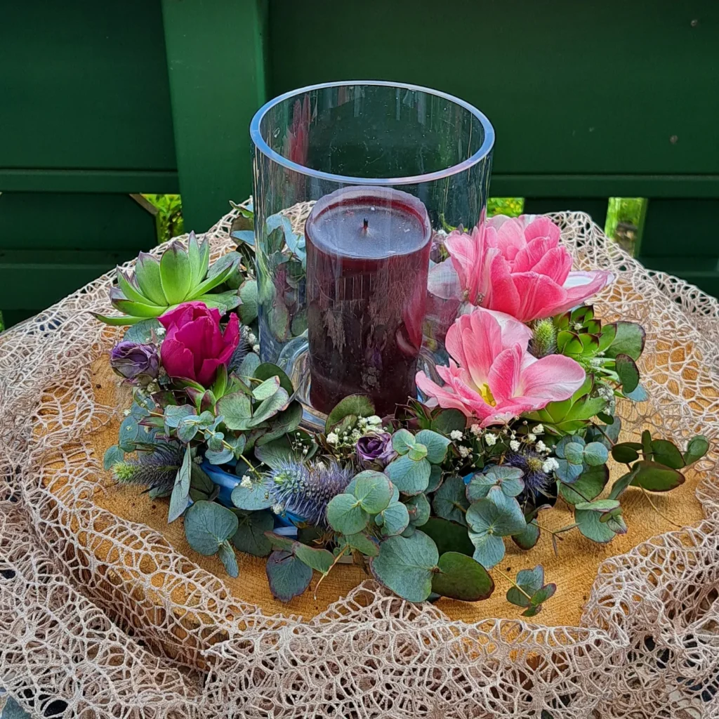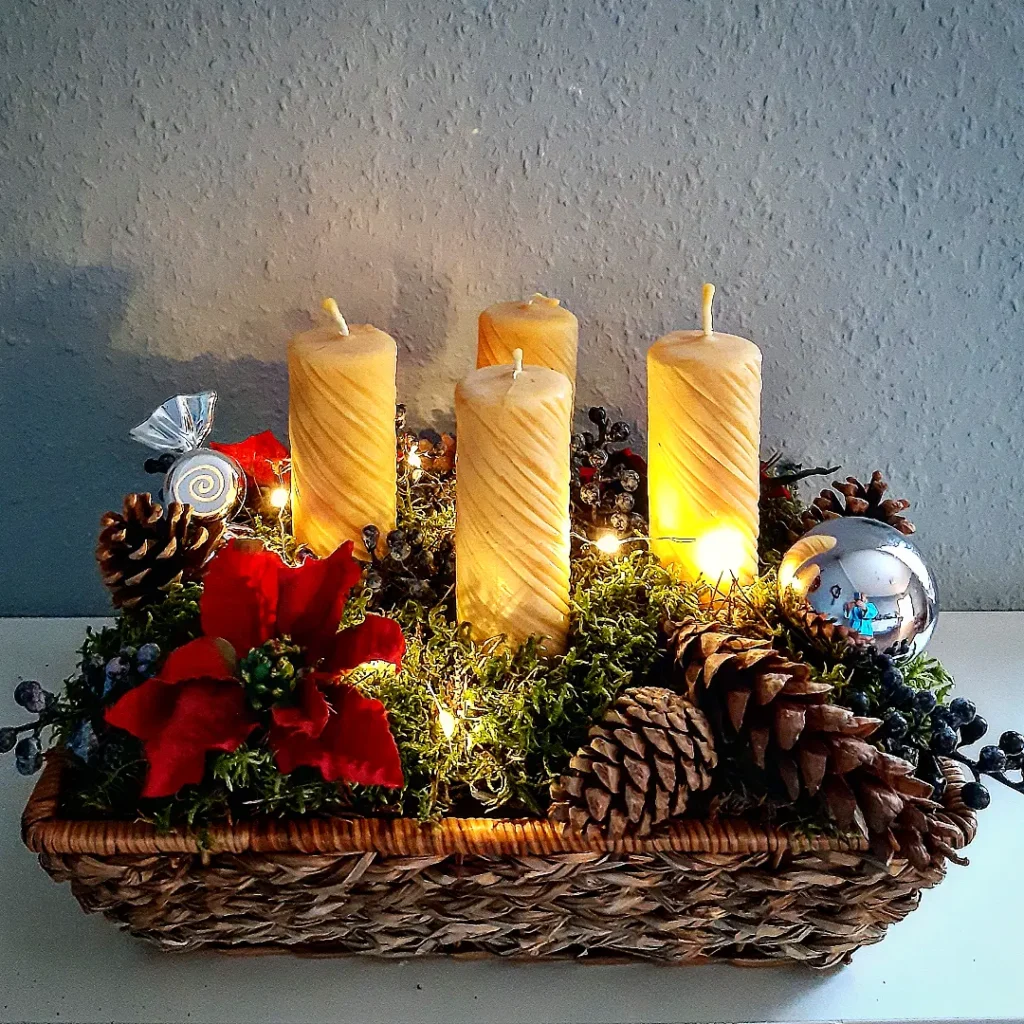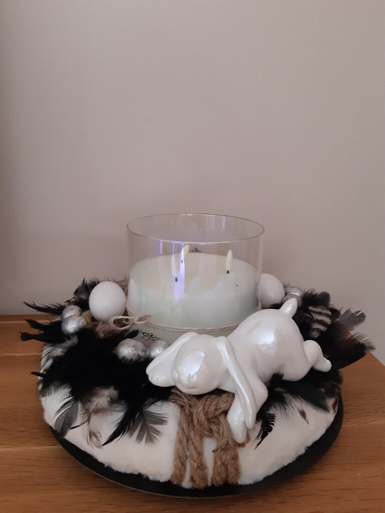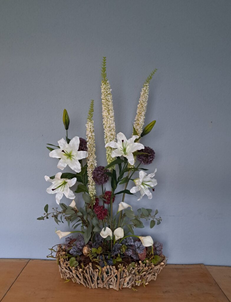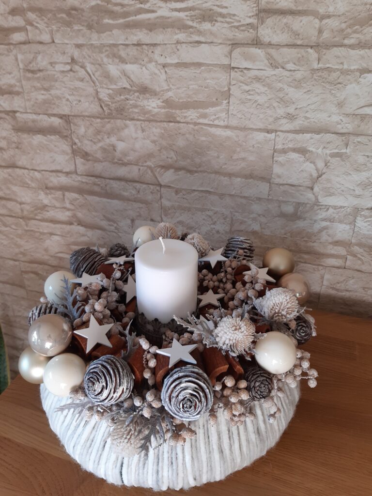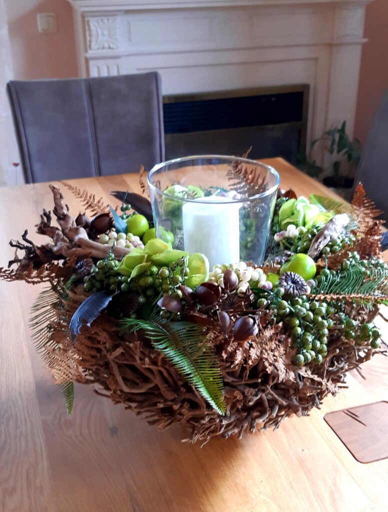 Referenzen Hier ist eine kleine Auswahl meiner Einzelstücke Holzschale mit künstlichen Frühlingsblumen, Keramikei und goldfarbenem Hasen weisser Keramikhase im Pampasnest Tischdekoration mit Led-Windlicht Adventskranz mit Kerze Honigkürbis auf einem Flechtenkranz, dekoriert mit Beeren, Eicheln und Zieräpfeln Adventsgesteck im Weidenkorb mit Bienenwachskerzen Brautstrauß im Kunstfellkleid Haarkranz aus Frischblumen Gesteck zum Muttertag aus bunten Rosen Wandloop mit Trockenblumen Kerzenständer mit Trockenblumen kleines Gesteck im Ei mit Trockenblumen Dekoration für Zahnarztpraxis Magnolienvase Sommergesteck mit Muscheln und Mohnblüten Osterkranz mit Heidelbeergrün und Holzhasen Mooskranz mit verschiedenen Zwiebeln Tür-oder Wandkranz aus Schneckenhäusern kleines Gesteck mit Dekokürbis herbstliches Tischgesteck mit Glaswindlicht Frischblumenkranz auf einer Baumscheibe mit Glaswindlicht